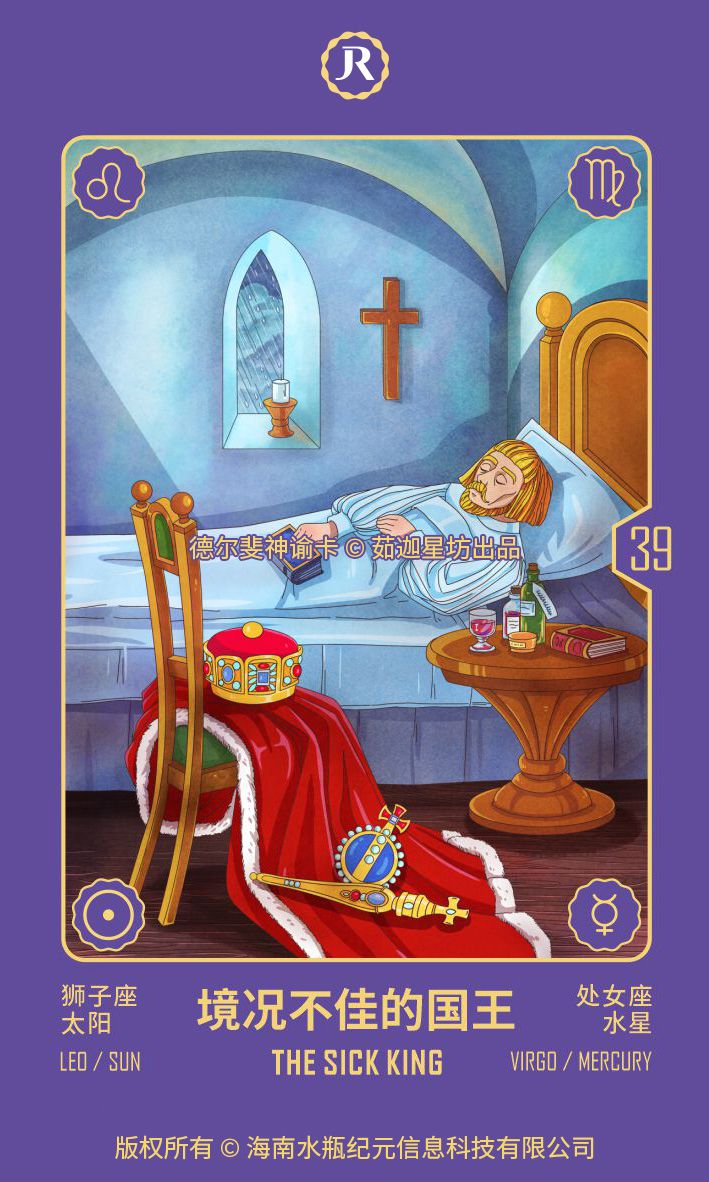 太阳在生命中的位置总是代表着国王(或自我)想在生命中占据的位置。但有时候,国王也会感到不适和虚弱。 那时的他更愿意回到床上,拉过一条毯子,扮演“生病的国王”,这样每个人都会对他宽容一些。