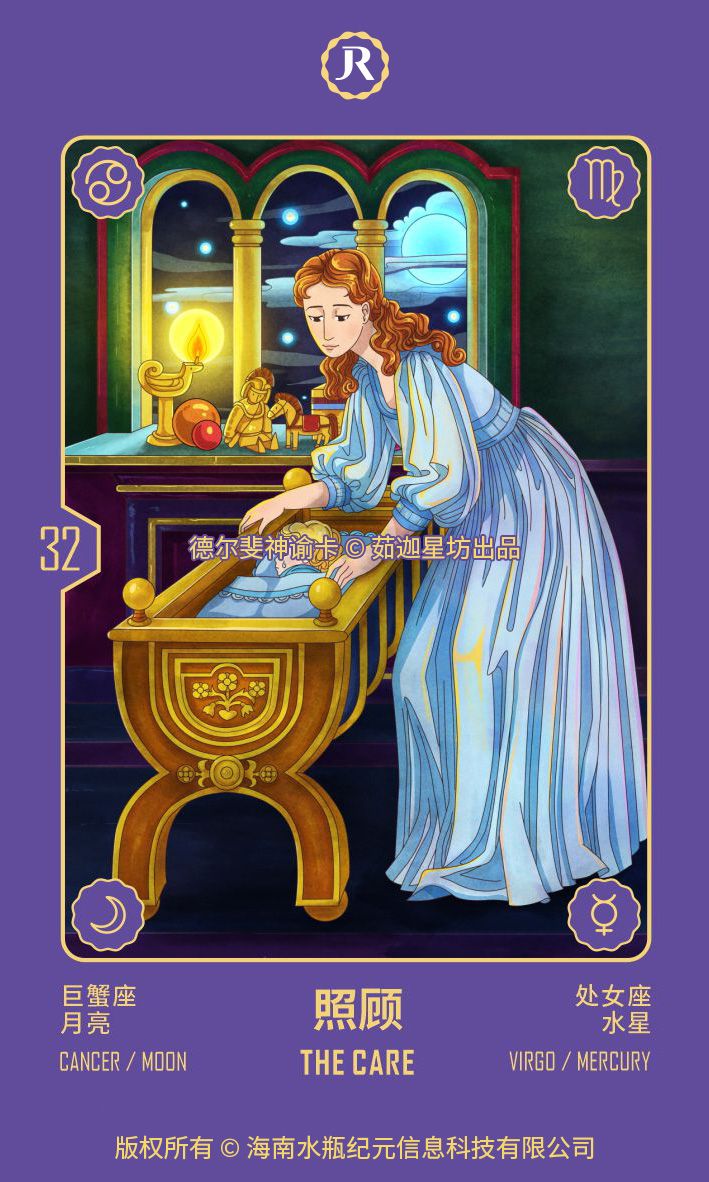 这张卡告诉我们,我们在寻找另一个比我们自己更弱小的生命,我们活着就是为了照顾这个比我们更脆弱的存在,保护它,为它操心(字面意义上的),就像这个脆弱的生命如何克服生活中的危险一样。因为我们的卡片不仅仅想描述外在的事物,这张图也同时表明:你内心的小孩正处于深深的忧虑之中。所以,去照顾它吧!