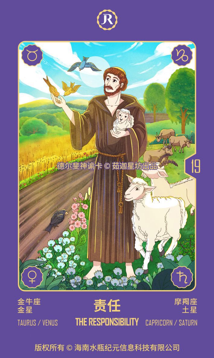 你现在认识到了内在的“圣弗朗西斯”,你的一部分已经苏醒,能与世界上的生物和谐共处。你已经准备好承担责任,并且感觉自己与自然和谐一致。