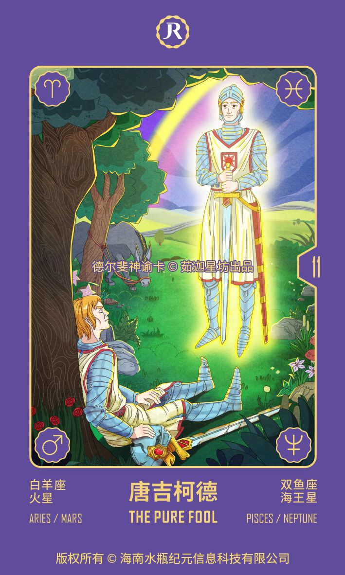 习惯了击退这个世界上的任何东西的战士发现自己置身于一个 超越时间的领域——梦境,在那里没有东西可以征服或占领。因此,他现在梦想自己是一位光芒四射的骑士。在梦里,他确实是一位光辉的英雄——但在尘世间,他却是一个梦想家,也就是说,他是一个高度幻觉者。他在想象中创造了某些东西。
