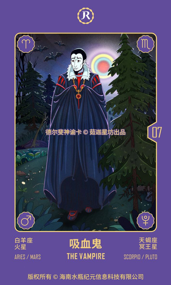正常的火星(参见战士)是向外在世界导向的,赋予人类主动性和征服新事物的力量。而吸血鬼是冥府的火星(在古典占星术中,天蝎座的守护星也是火星),没有向外的主动性,没有尝试新事物的能力,而是必须向内,朝向灵魂,这样就形成了一个恶性循环:它没有自己的能量,需要他人的能量才能存在,用它得到的能量无法开始任何属于自己的东西,除了占据宿主以保持能量流动不断。这是一个真正悲伤的故事。因为它没有死去,也就无法重生。而每一个它吸取的人也会变成未死者——没有了属于自己的主动性。