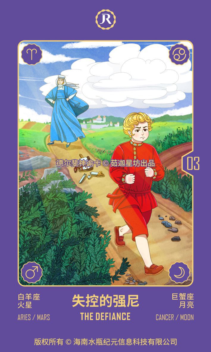 当小孩童(来自巨蟹座卡片)感到不公正、糟糕,甚至愤怒地对待时,它可以立即将其行为转变为“叛逆”模式!那时它不再是挑衅的,它成为了挑衅本身!对于你所处于的这种状态,这种在你体内运作的状态,没有治愈方法。你甚至无法自助。 这张卡片说:没关系,去叛逆吧!你越接受这一点,你的内在的小孩就能越快停止这种行为。