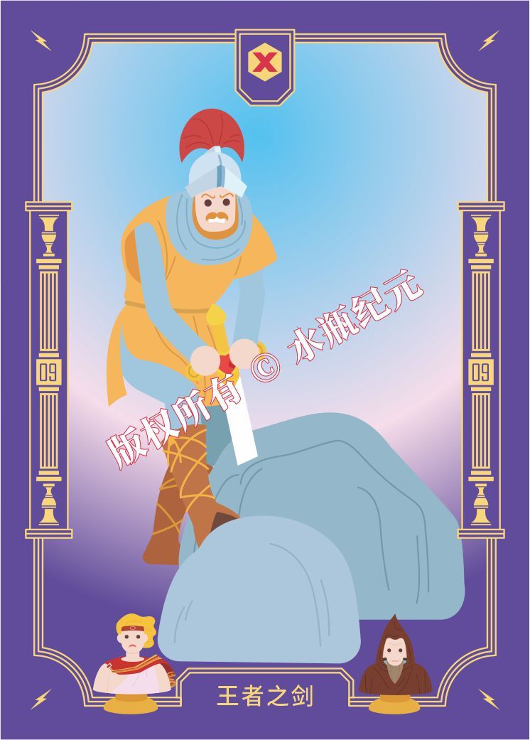 一个粗野的士兵想要从石头中拔出这把剑,他脸上的表情显示出了他付出了多大的努力。但我们怀疑他不是这把剑的合法主人,因此他不可能拔出这把剑。他的努力是徒劳的。