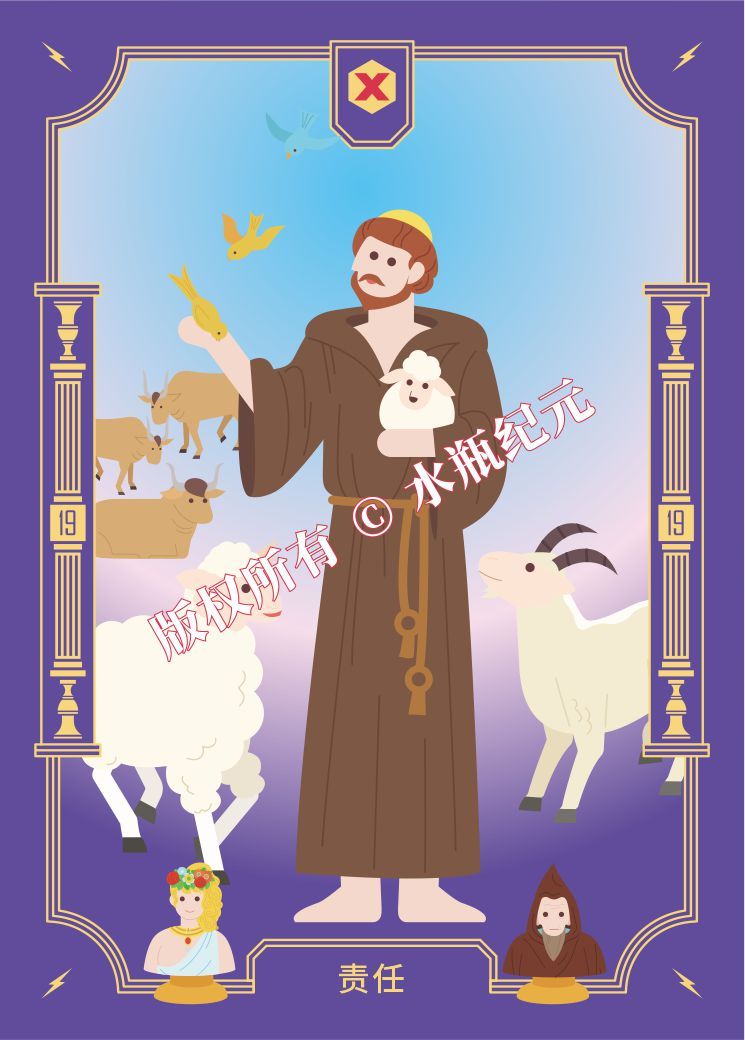 你现在认识到了内在的“圣弗朗西斯”,你的一部分已经苏醒,能与世界上的生物和谐共处。你已经准备好承担责任,并且感觉自己与自然和谐一致。