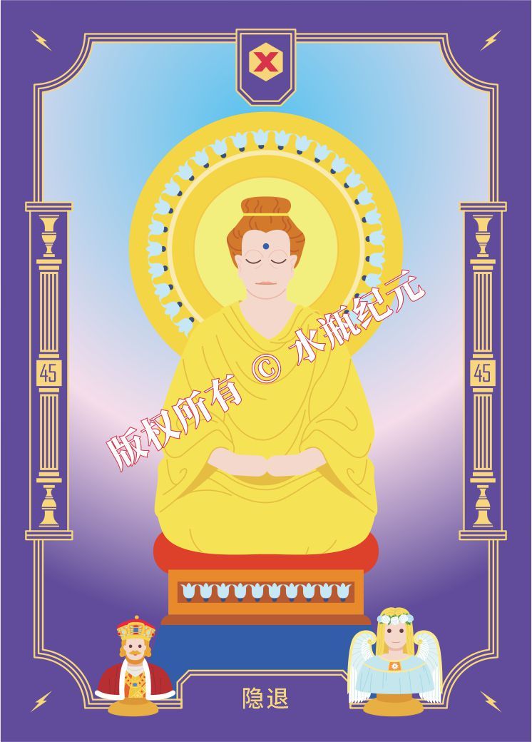 第一眼看到这张牌的人难免会产生一个误区,特别是在所谓的“灵性人”圈子里,当这张卡被抽到时,可能会产生高度的喜悦,因为看起来他们已经在通往佛性的道路上领先了一步。但这并非这张卡的意义所在。它的主题很简单:闭上你朝向外界的眼睛,向内开启。或者说:此刻外在没有东西可供你获取,因此要转向内在。