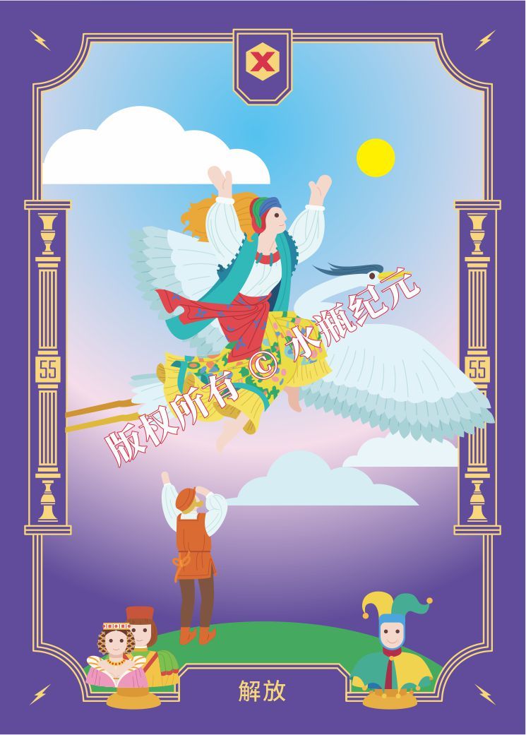 这张卡片向你提出挑战,要求你放弃某样东西——特别是已经伴随你数月或数年之久的东西。你将飞向自由,而那个其他事物(可能是物质的,比如抽烟、酗酒,甚至是《花花公子》的订阅)被留在身后,并向你呼唤:“请留下吧,它曾如此美好!”